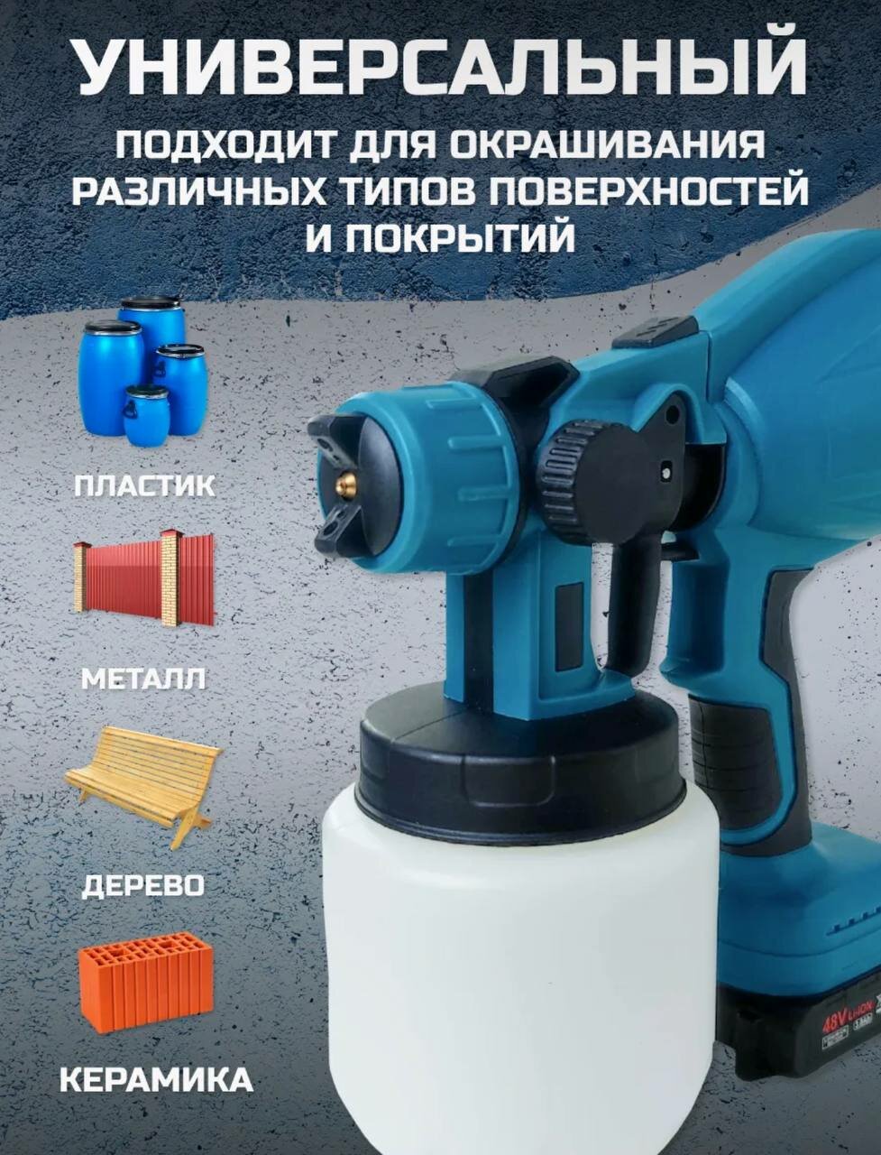 10 цен на Краскопульт аккумуляторный 48 Вольт, 2 аккумулятора в комплекте, бак на 800 мл, поставляется в картонной коробке