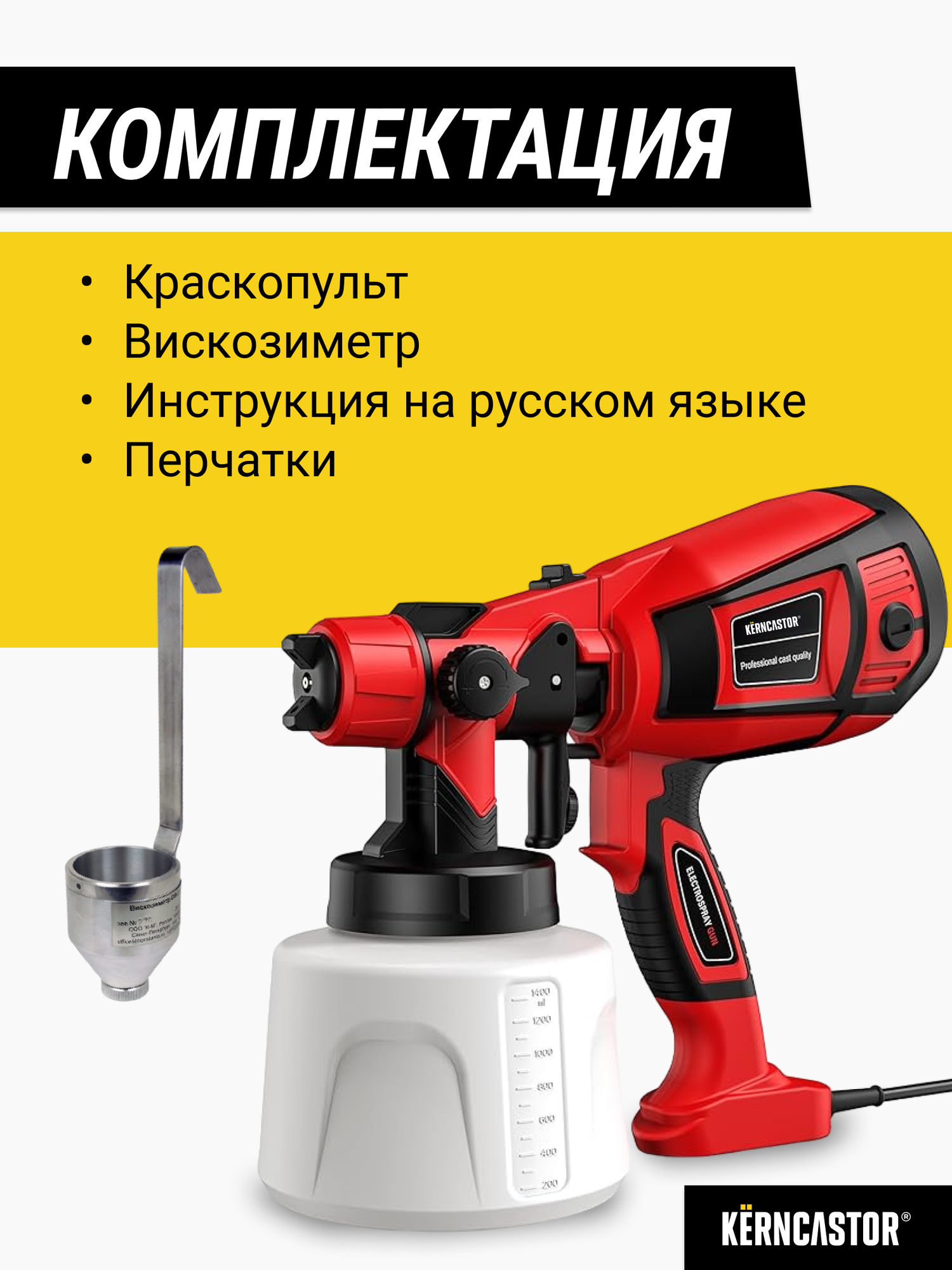 Отзывы на Краскопульт электрический сетевой KERNCASTOR для покраски, пульверизатор для краски