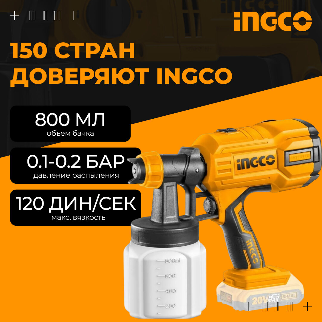 10 цен на Краскораспылитель аккумуляторный INGCO CSGLI2003, со сменными соплами