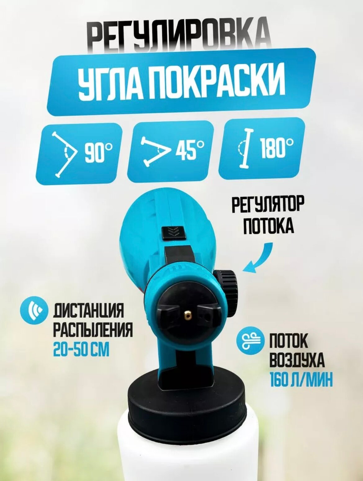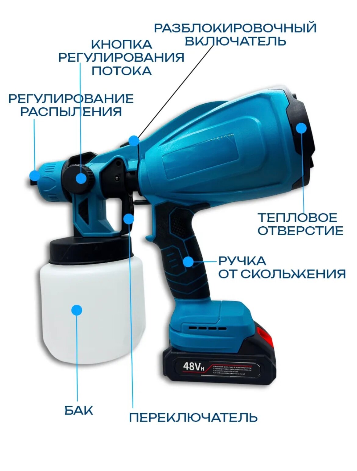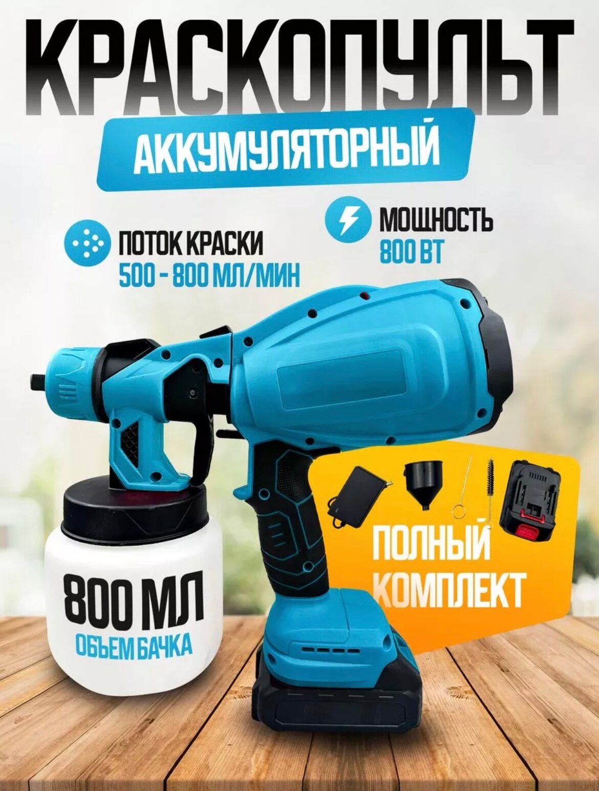 10 цен на Аккумуляторный краскопульт, 800 мл, мощность 80W, вязкость до 90, синий