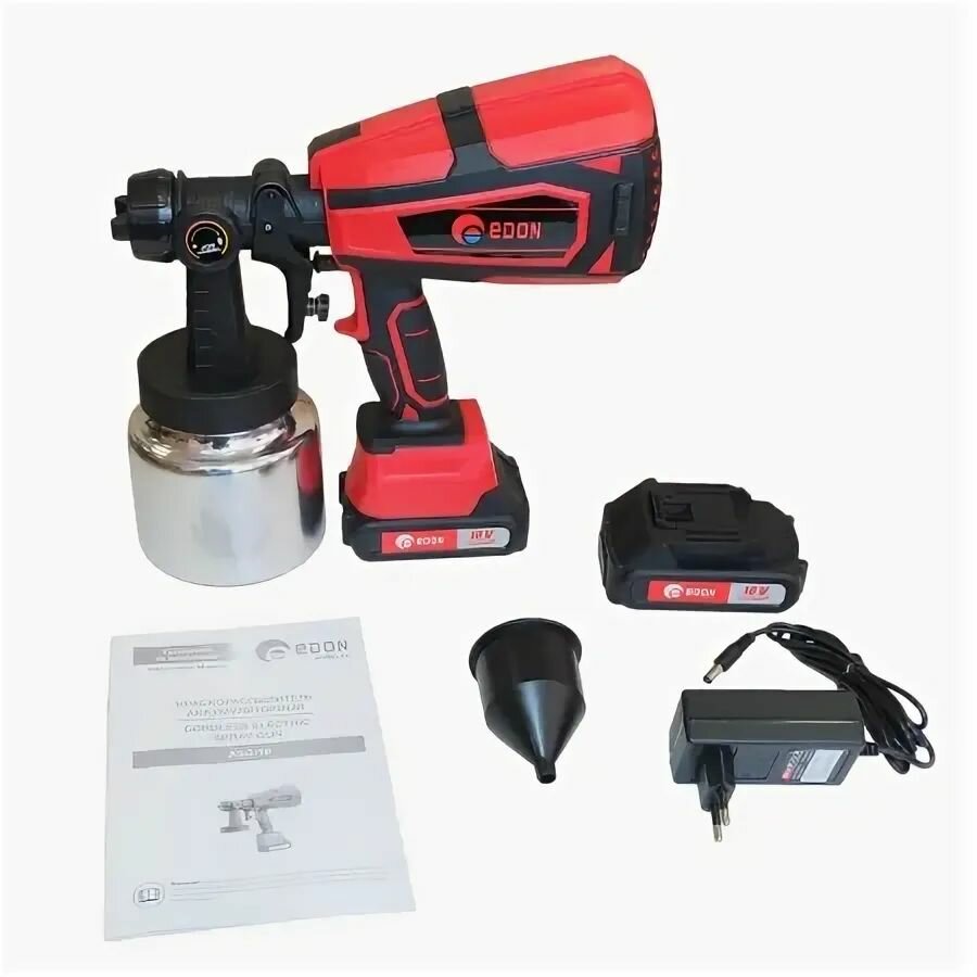 Отзывы на Краскораспылитель аккумуляторный EDON UGG-21A 28334 21В, 0.8л, 70 DIN/сек, 2 АКБ + ЗУ + кейс пульверизатор