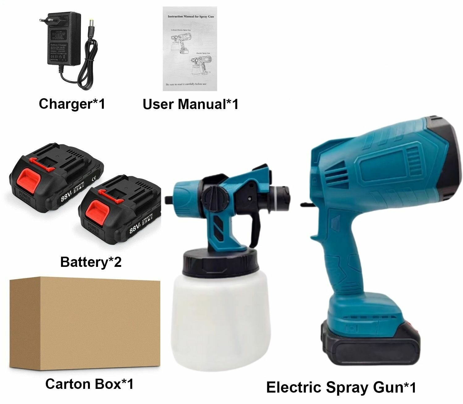 2 шт аккумулятор 600W 1000мл Краскопульт электрический NAUXIU информация: