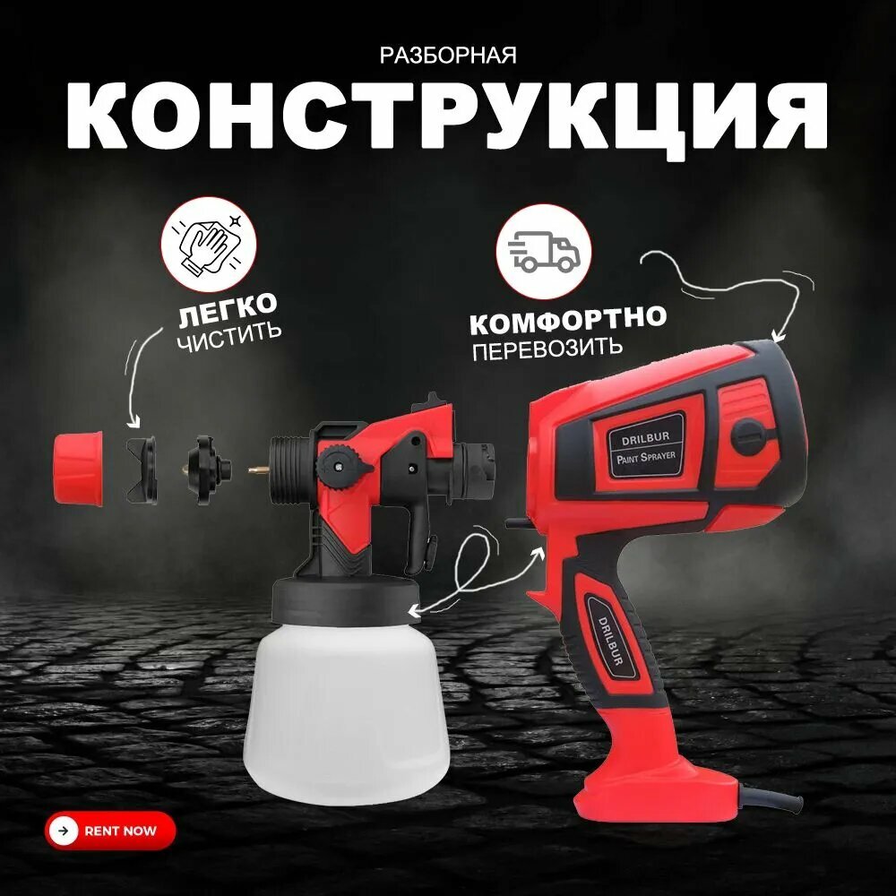 10 цен на Краскопульт электрический, мощность 850Вт, объем бачка 1400 мл