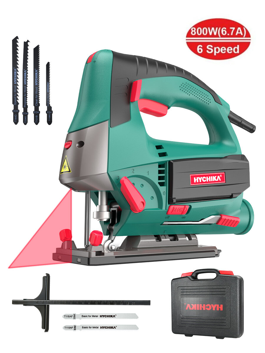 10 цен на Электрический лобзик HYCHIKA 800 W 3000 RPM, с лазером, в кейсе