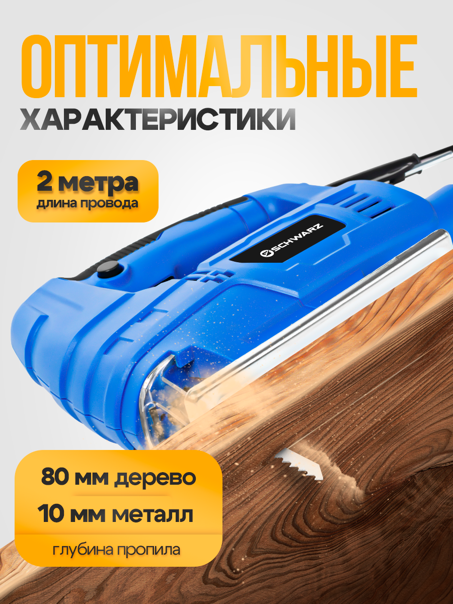 Лобзик электрический сетевой Schwarz, 1000 Вт, 3400 об/мин, 80 мм, маятниковый ход информация: