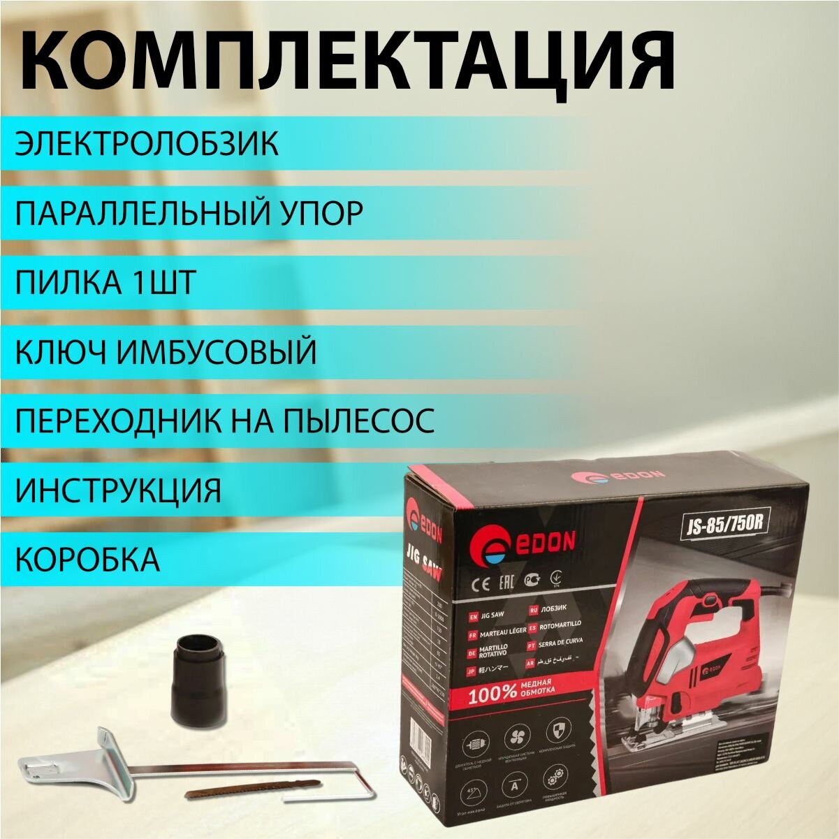 10 цен на Лобзик электрический 750 Вт EDON, угол наклона подошвы 45 градусов, фиксация кнопки пуска, маятниковый ход