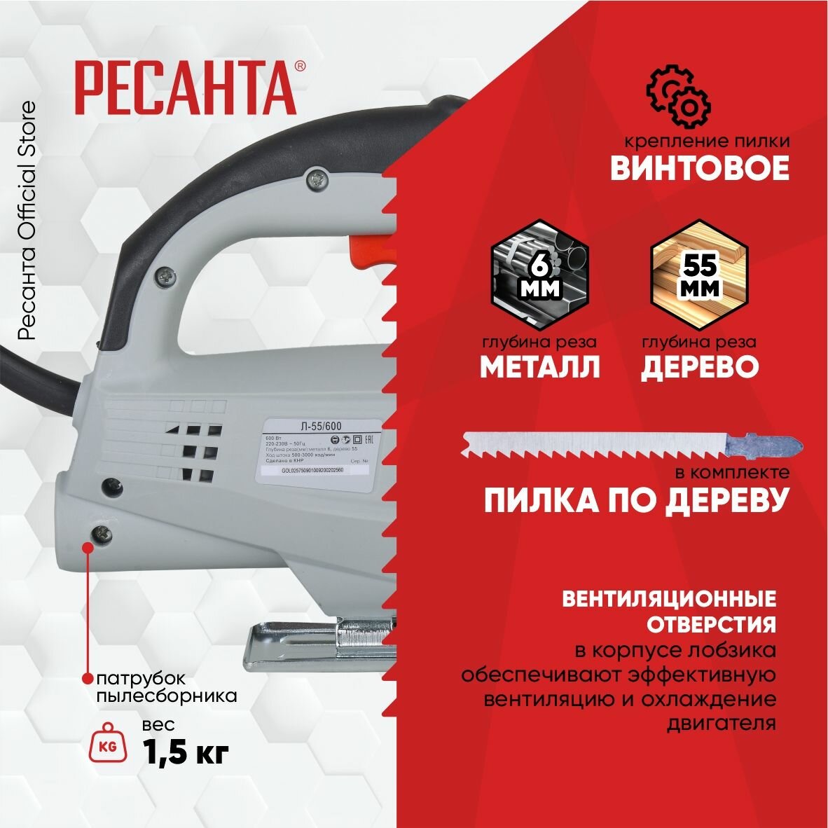 Лобзик электрический Л-600M Ресанта, 600 Вт, глубина пропила до 55мм информация: