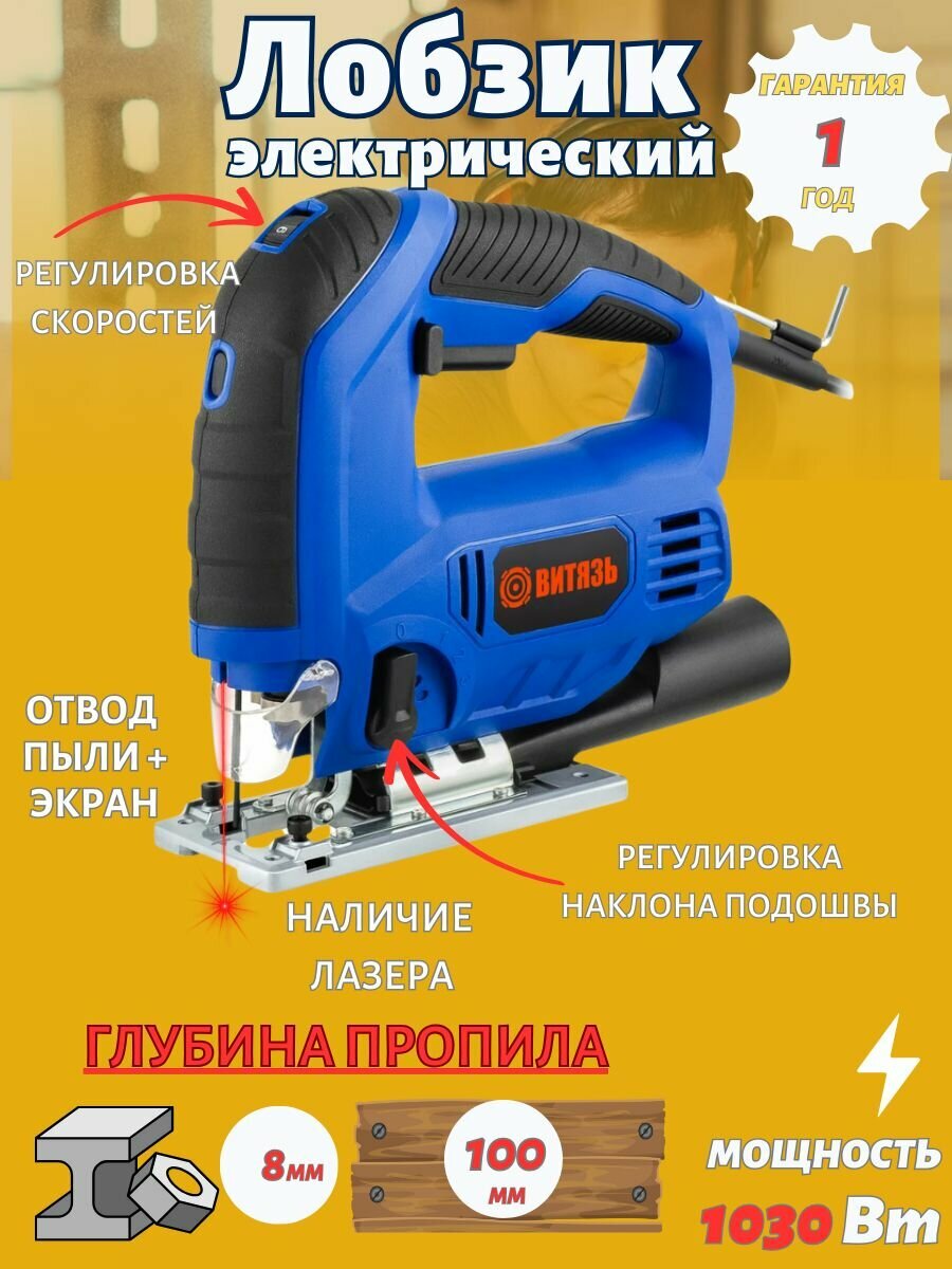 10 цен на Лобзиковая пила Витязь ПЛЭ-1030, подключение пылесоса, резка дерева до 100мм