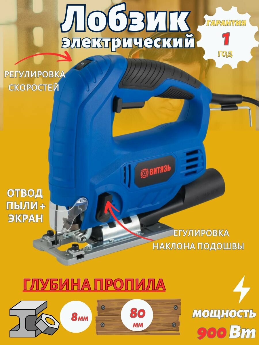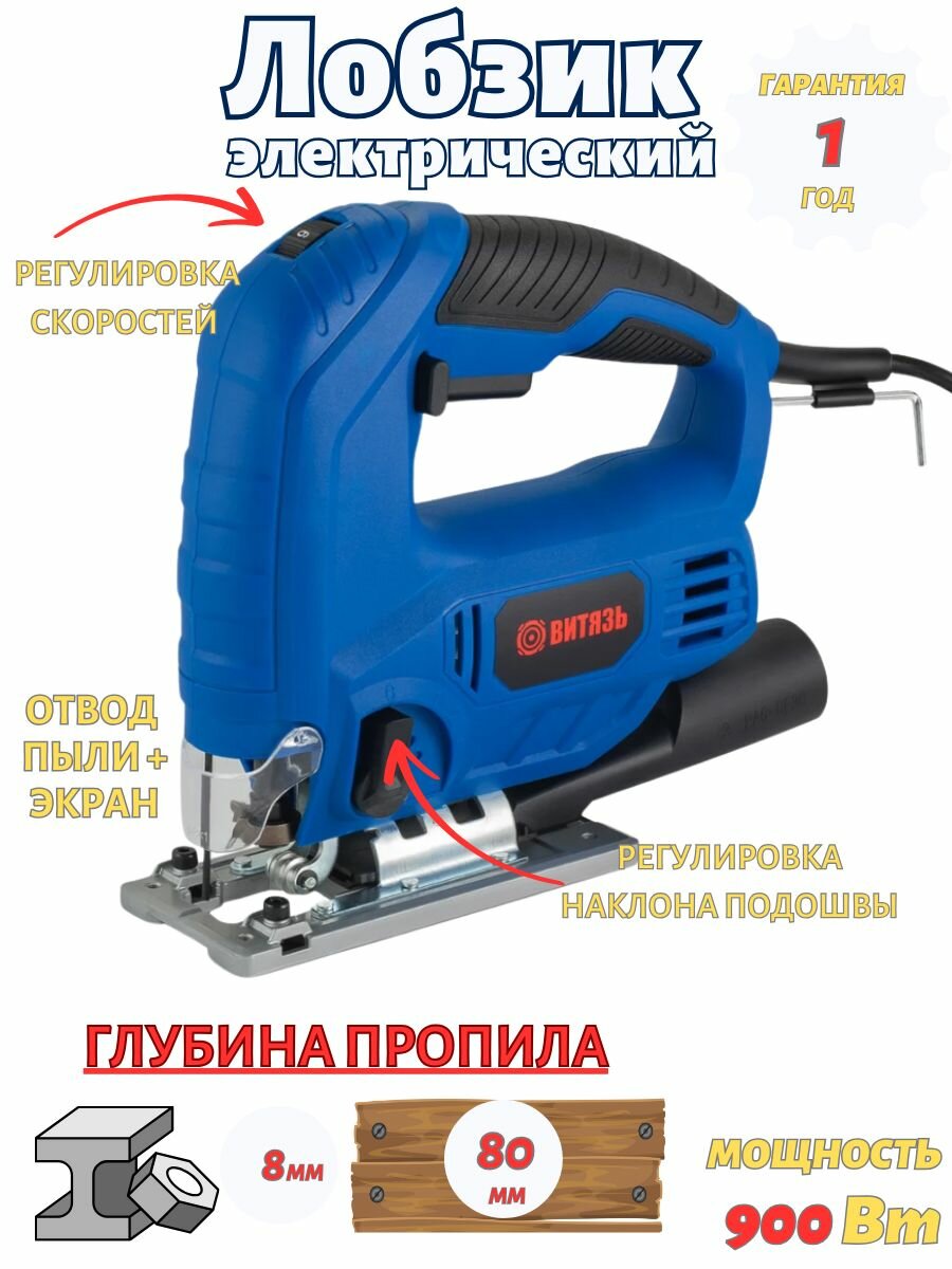 Пила лобзиковая электрическая Витязь ПЛЭ-900, пылесборник, 900Вт, электролобзик информация: