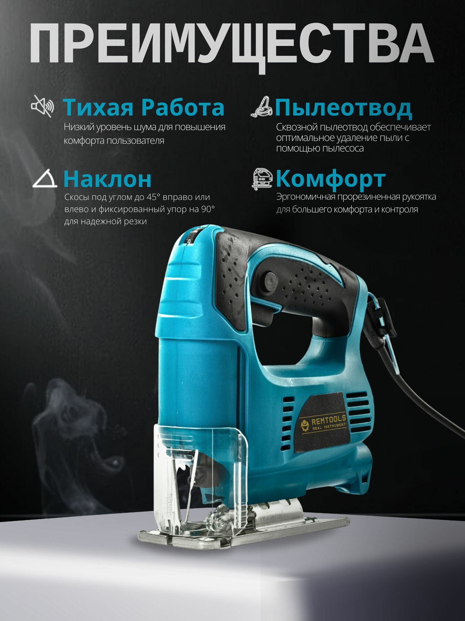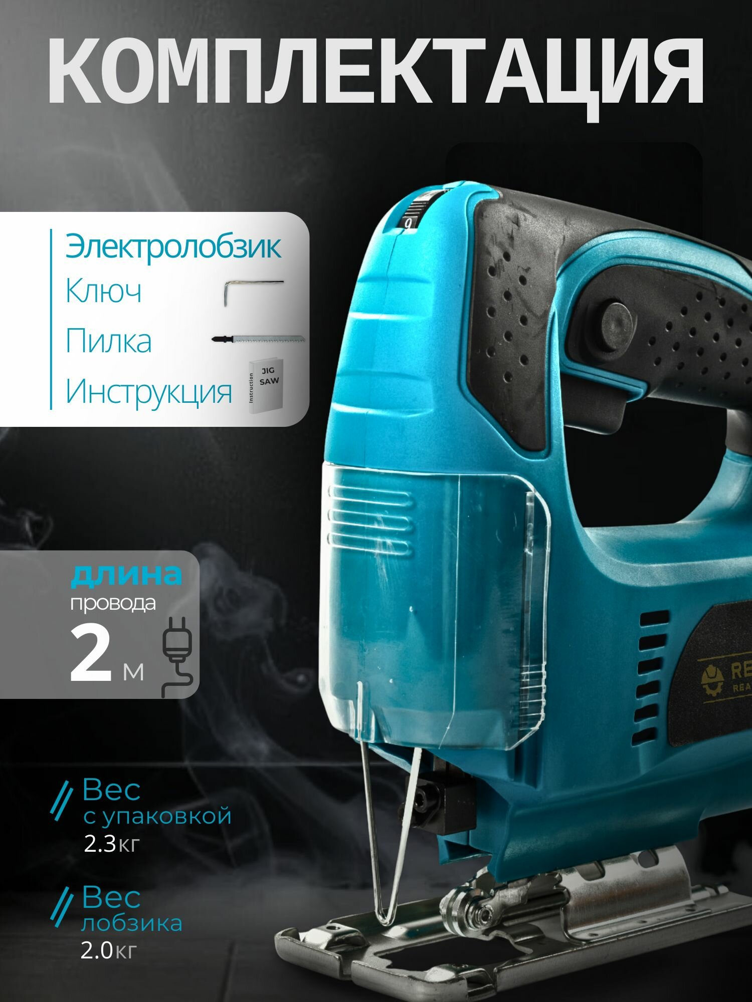 Электролобзик NEKIS, ход пилки 20мм, 500Вт, без аккумулятора, синий информация:
