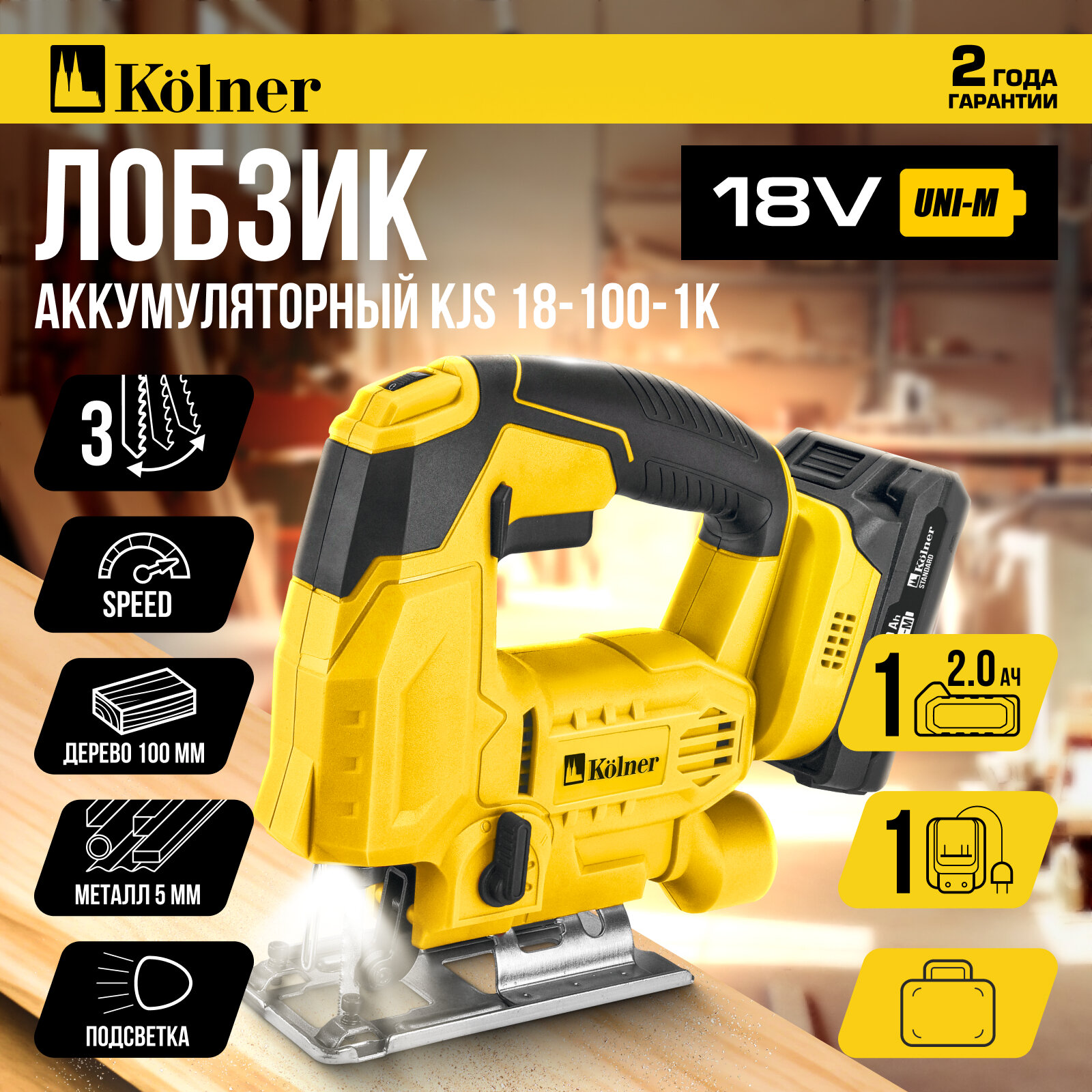 10 цен на Лобзик аккумуляторный Kolner KJS18/100/1K, 18В, Li-ion, глубина пропила 100мм, бесщеточный, в кейсе