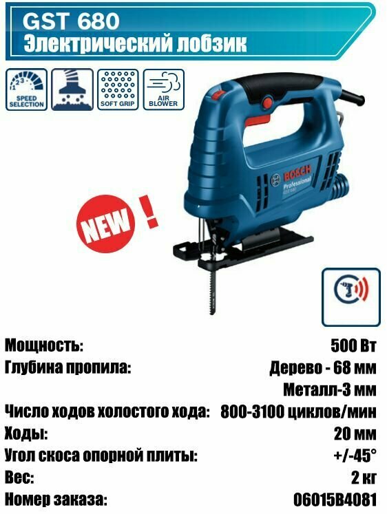 Инструменты BOSCH GST 680 с кейсом, стандартные информация: