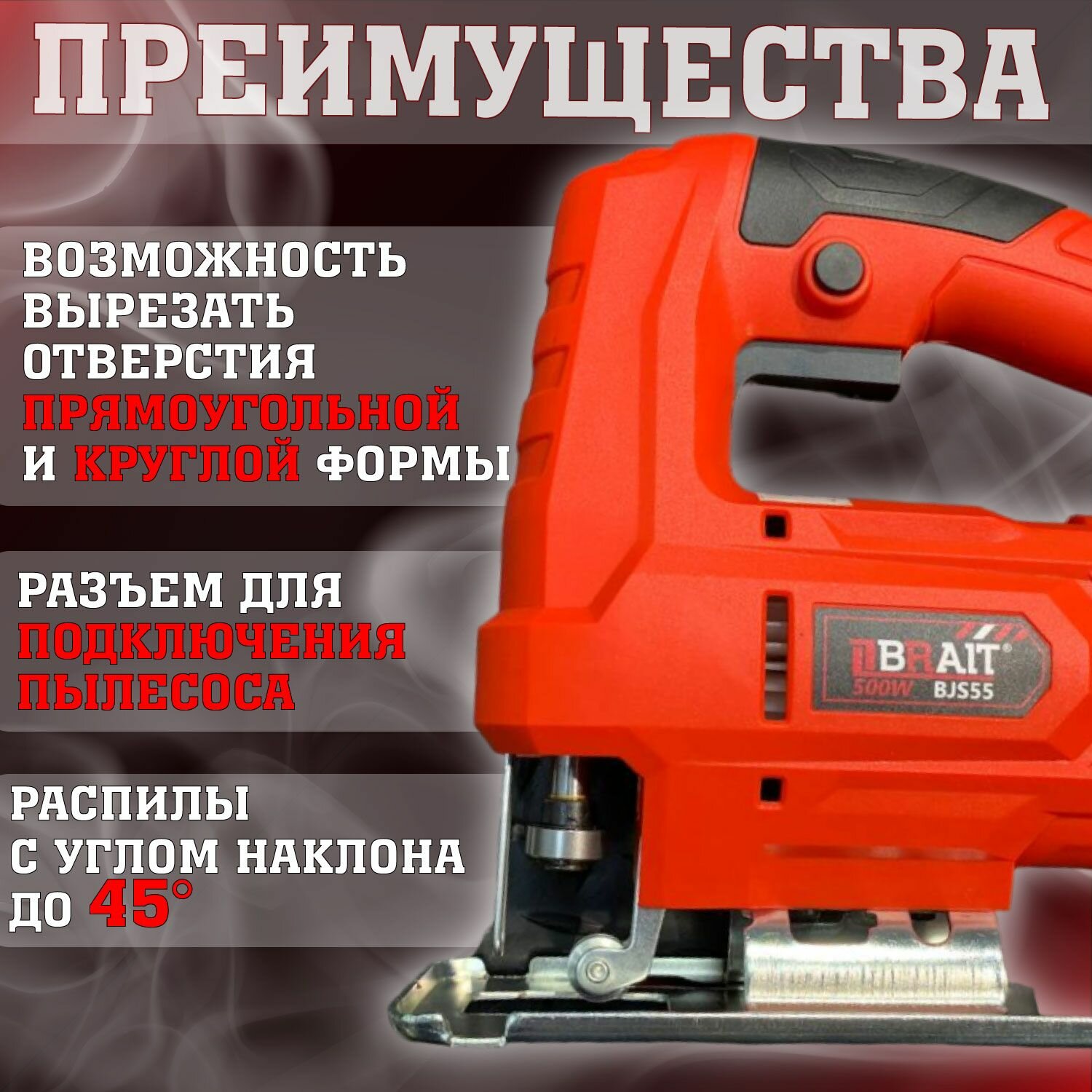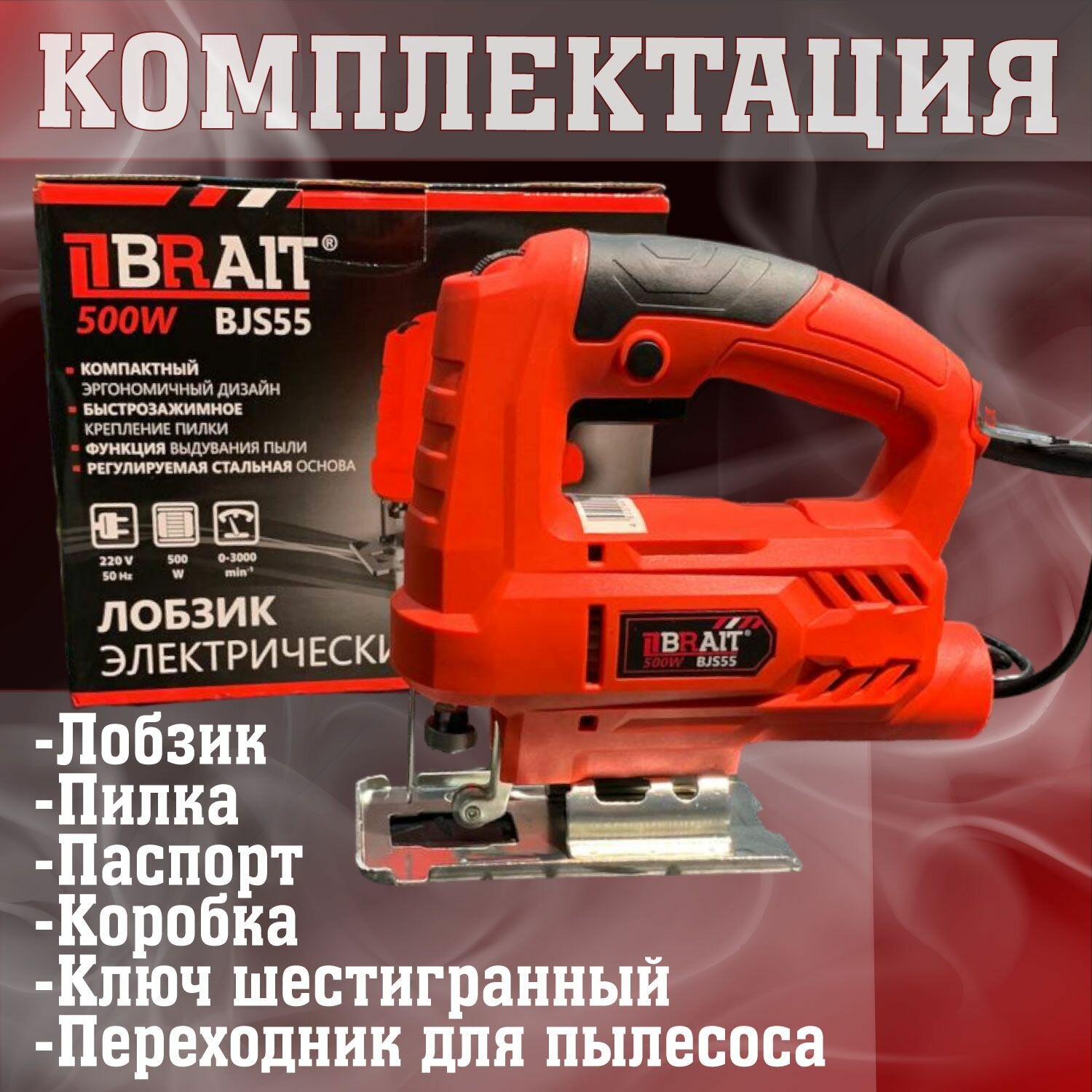 Лобзик электрический BRAIT BJS55, мощность 500 Вт, частота движения пилки ходов/мин 3000, электролобзик информация: