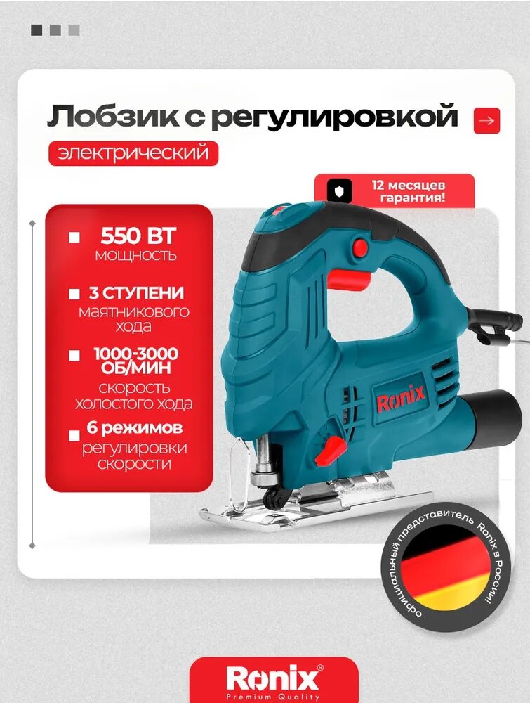 Лобзик электрический Ronix электролобзик с регулировкой скорости 1000-3000 об/мин информация: