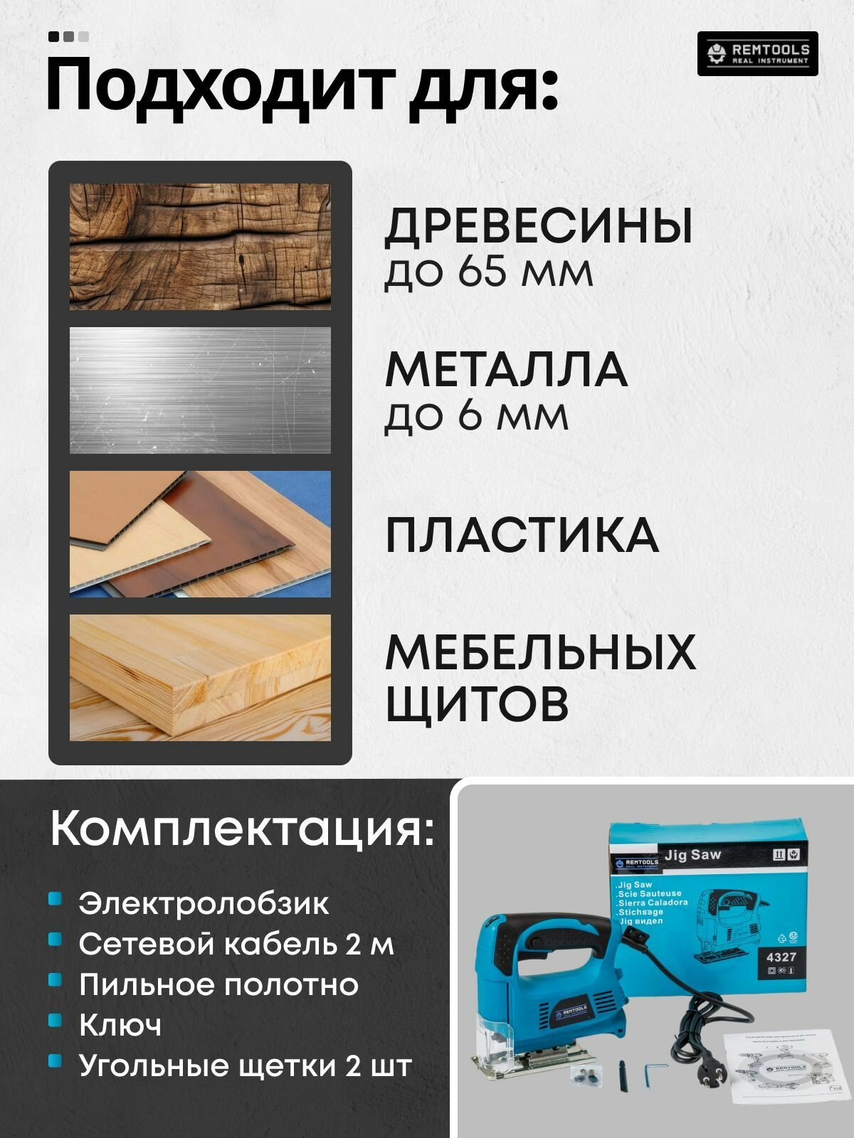 Лобзик электрический, Remtools / электролобзик сетевой с зашитой информация:
