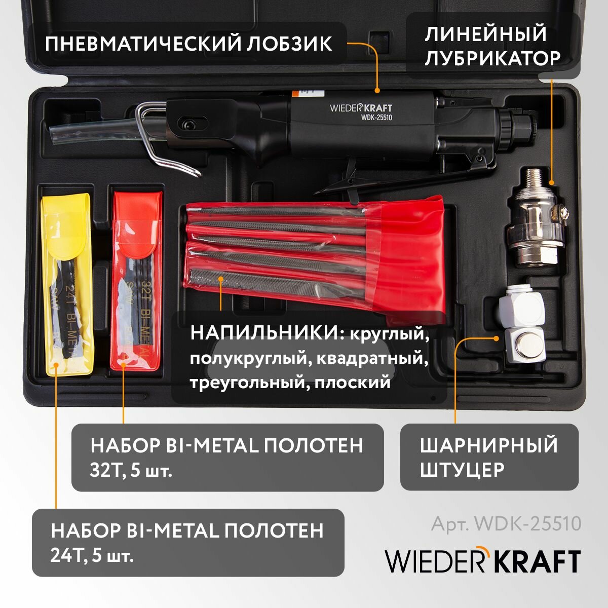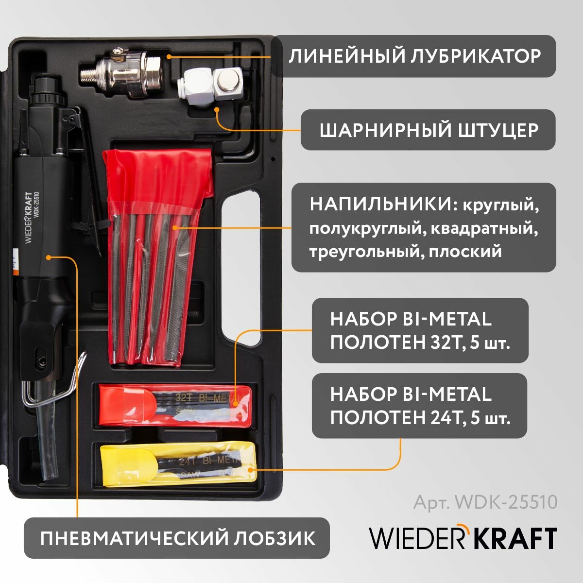 Лобзик пневматический с набором аксессуаров WIEDERKRAFT WDK-25510 информация: