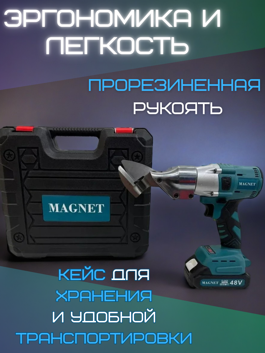 Ножницы по металлу аккумуляторные, строительные, 2 АКБ, 48 V 5.0 Ah Magnet информация: