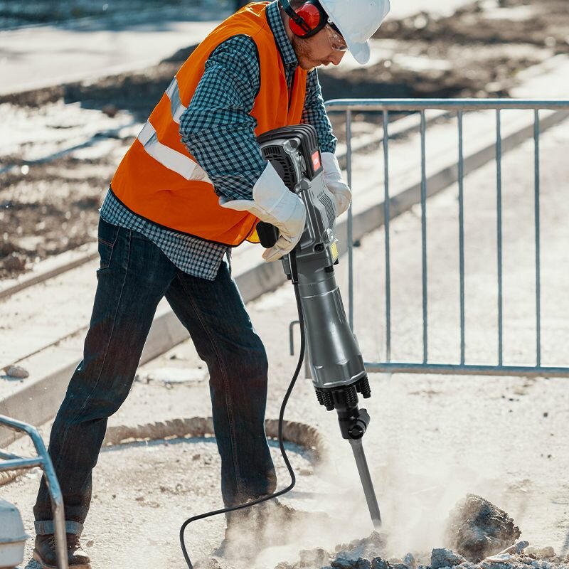 10 цен на Профессиональный отбойный молоток (бетонолом) DE-DG30-1E (2100Вт, 75Дж, 950 уд/мин, SDS-Hex)