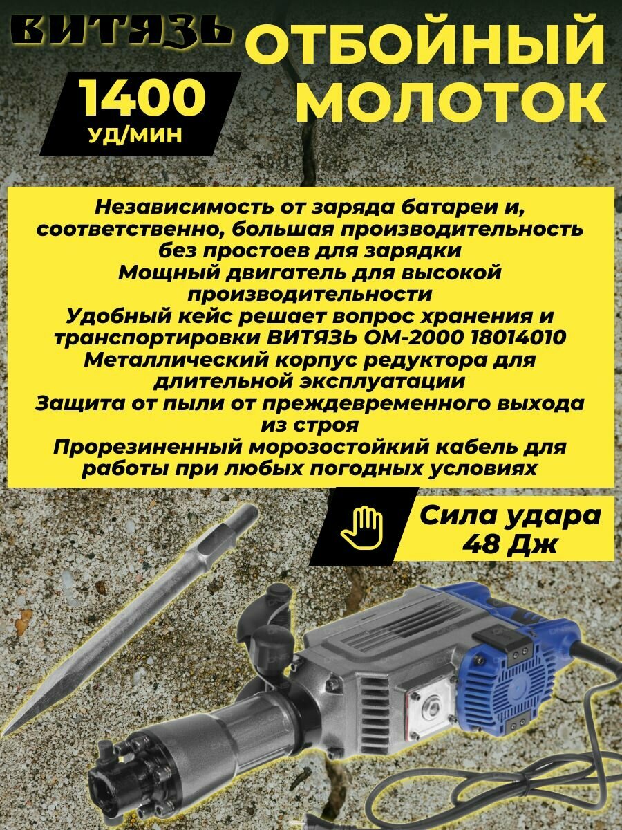 Отбойный молоток Витязь "ОМ-2000", электрический, 2кВт, ударный режим, кейс информация: