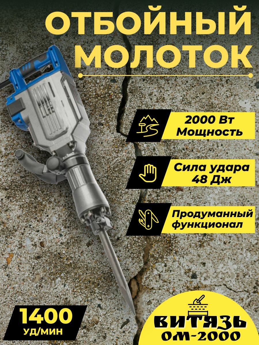 Отзывы на Отбойный молоток Витязь "ОМ-2000", электрический, 2кВт, ударный режим, кейс