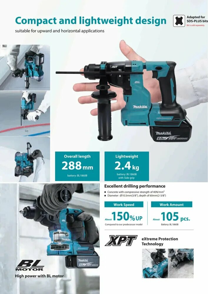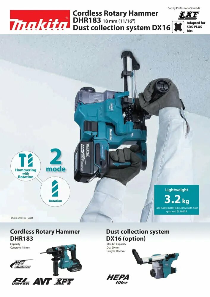 Роторный молоток Makita DHR183, бесщеточный, 18 мм, SDS-Plus информация: