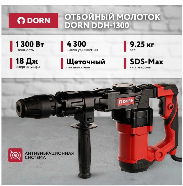 Отбойный молоток DORN DDH-1300 SDS-Max 1300 В 18 Дж информация: