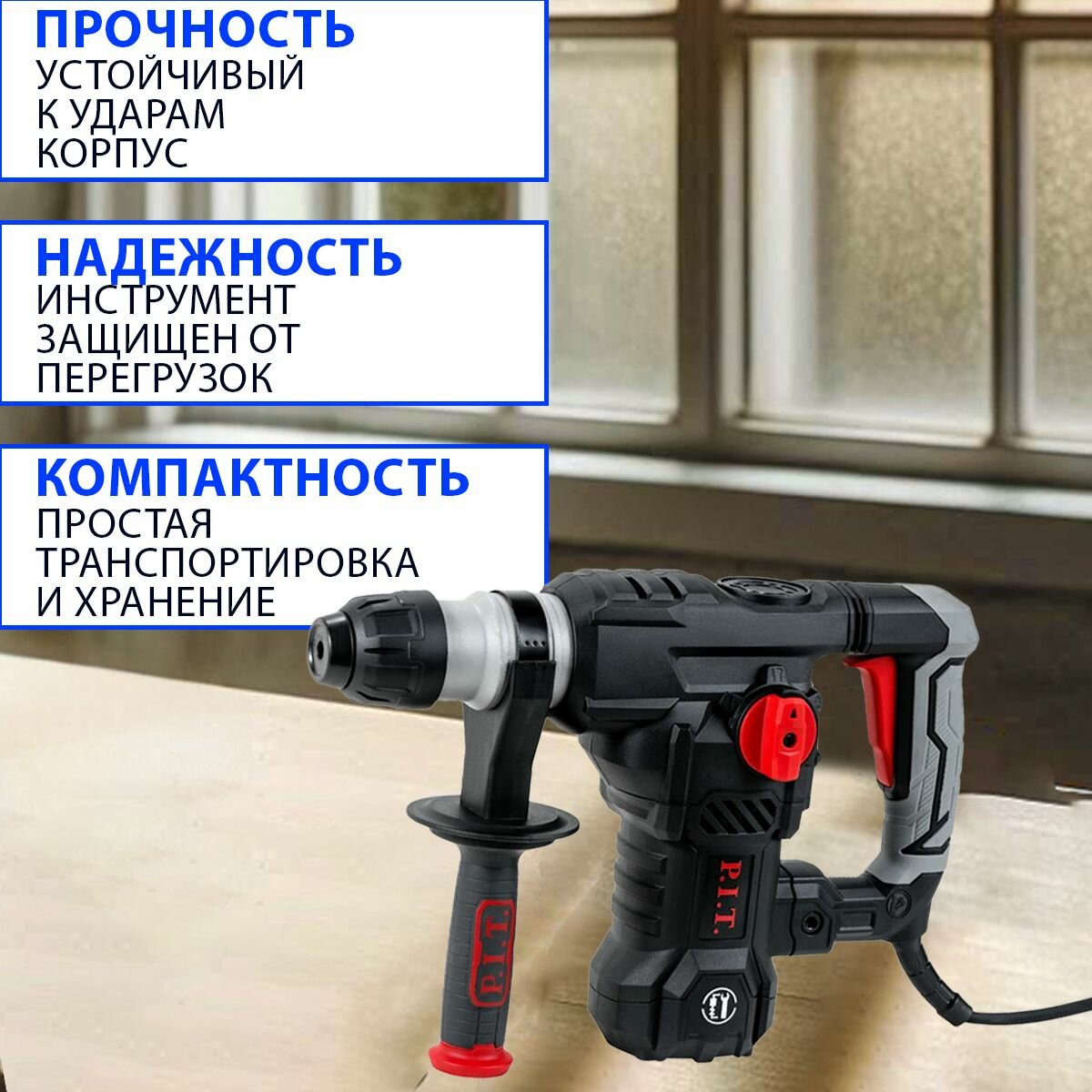 Отзывы на Перфоратор P.I.T. сетевой 6Дж в кейсе с набором из 5 буров SDS+, 1500Вт
