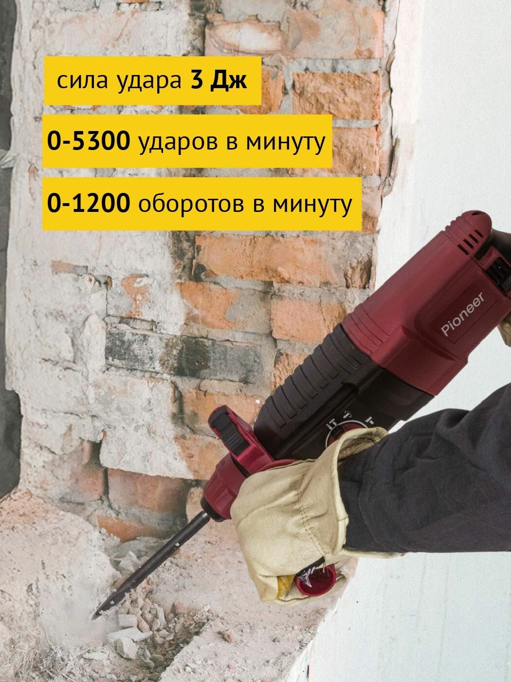 Отзывы на Перфоратор электрический ударный Pioneer RH-M800-02C / 800 Вт, SDS-plus, 3 Дж, 1200 об/мин, 5300 уд/мин