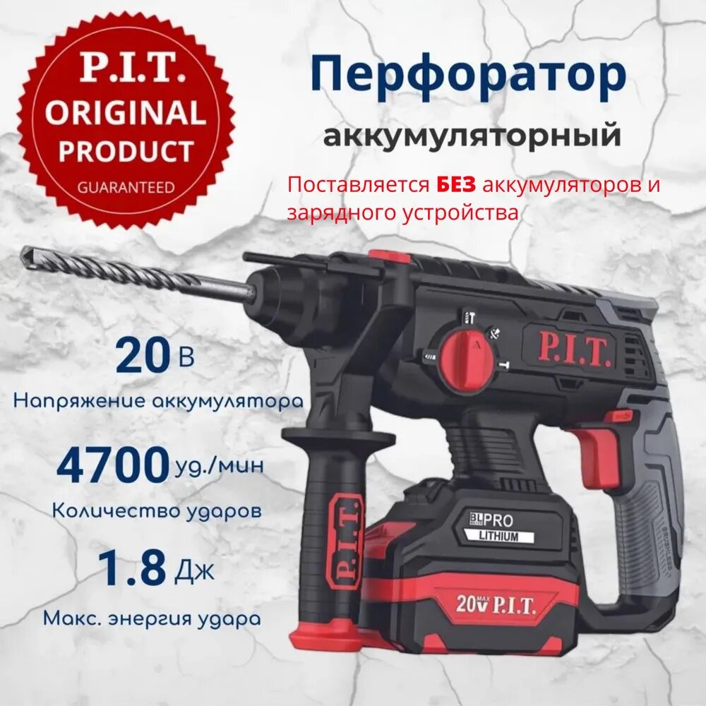 10 цен на Перфоратор SDS-Plus аккум. бесщеточный P.I.T. PBH20H-22B SOLO (20В, 1,8Дж, 3реж, Ø22мм, коробка)