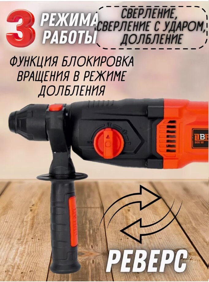 Перфоратор Brait BRH24D PRO (3-реж, горизонтальный, 800Вт, 2,4Дж, патрон SDS+) информация: