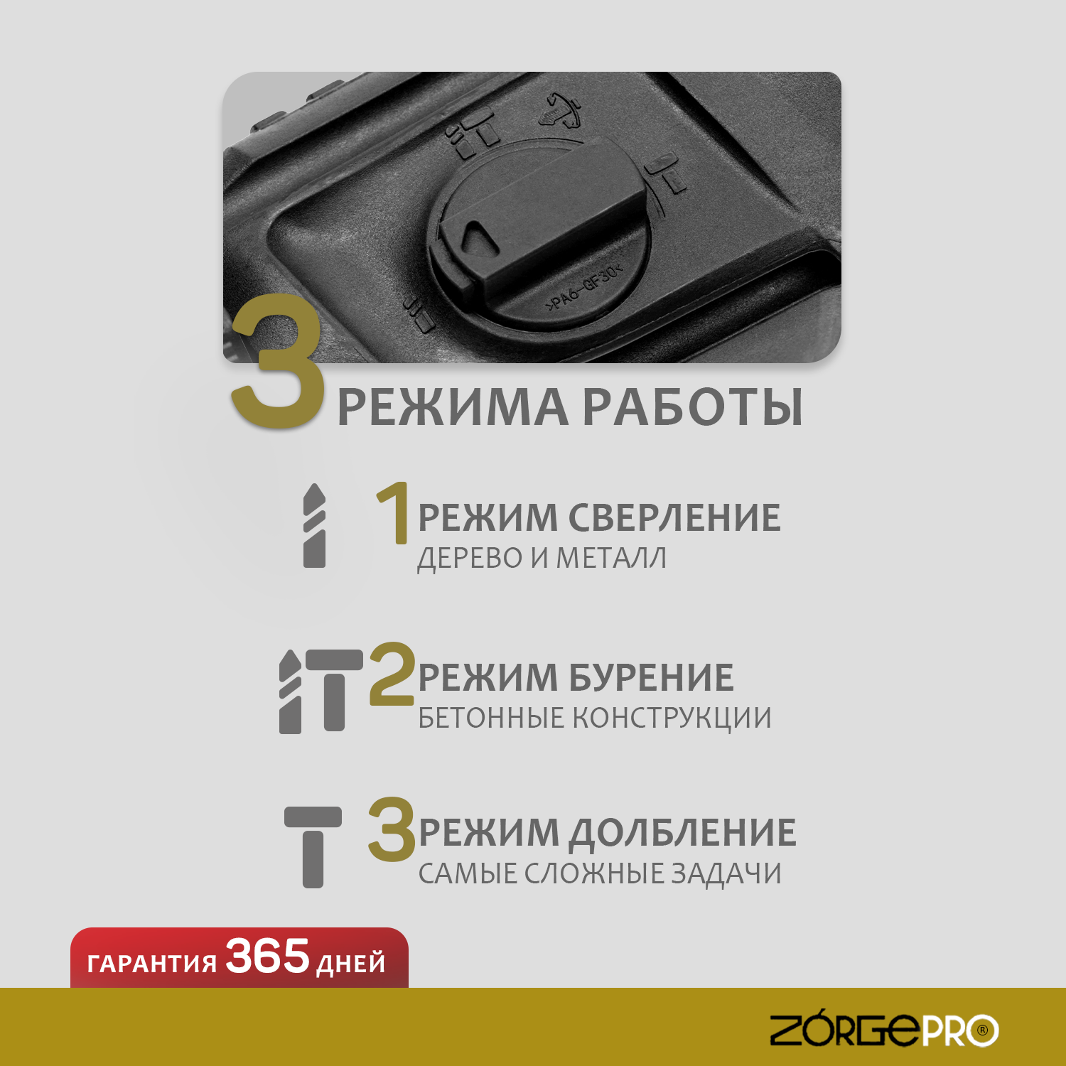 Отзывы на Перфоратор ZORGEPRO ПР-1100, 1100Вт , 4 Дж , 3 режима , SDS + , кейс