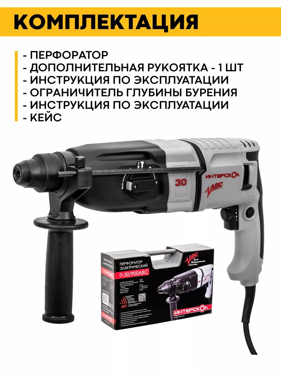 Перфоратор Интерскол П-30/900, SDS-plus, антивибрационный, 900 Вт информация: