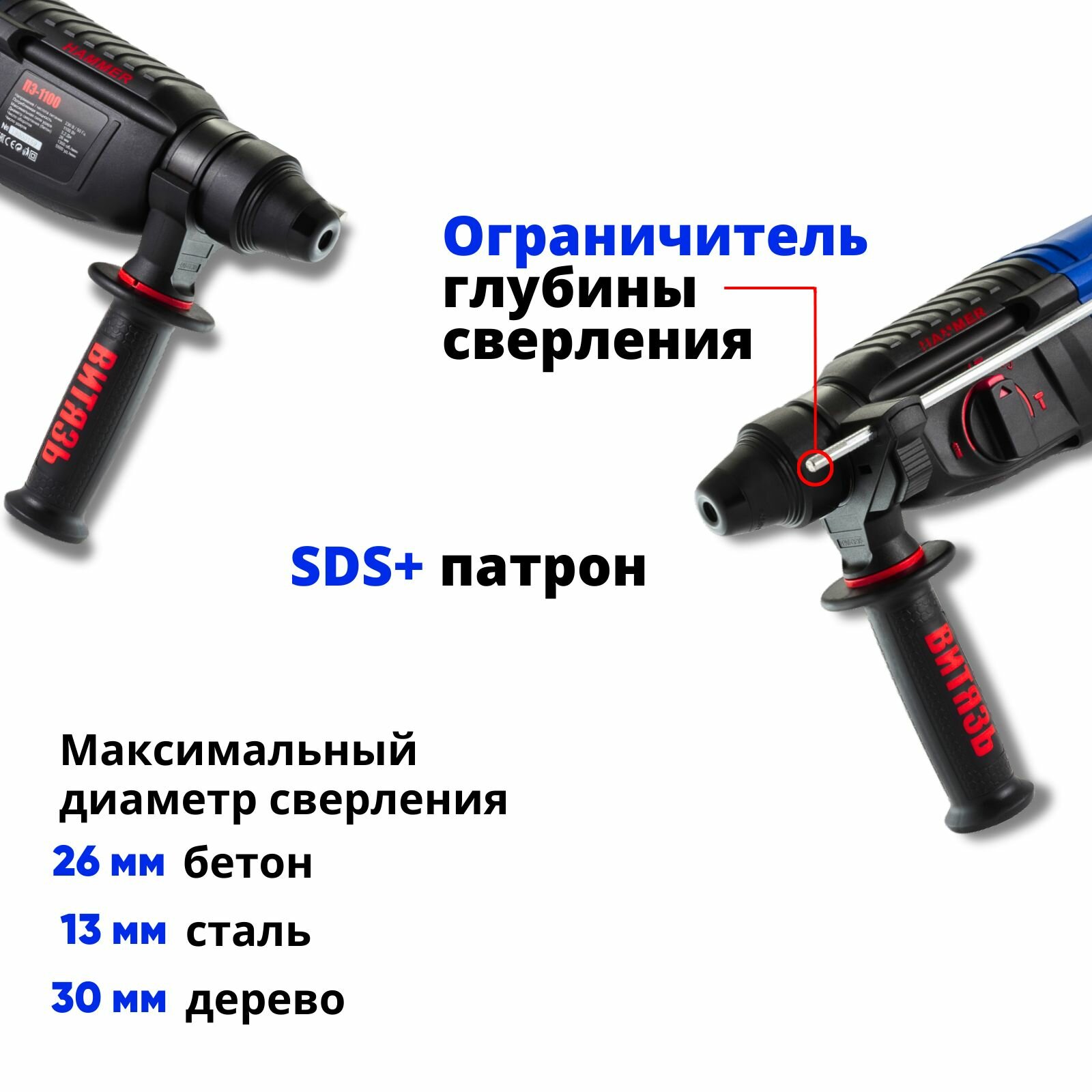 Перфоратор электрический Витязь ПЭ-1100, 3.2 Дж, SDS +(Пика, Зубило, Дополнительный патрон, Адаптер, Кейс) информация:
