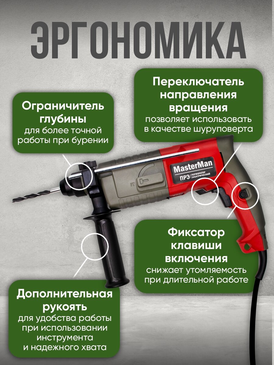 10 цен на Перфоратор электрический MasterMan SDS-plus 600W, с 2 режимами и кейсом