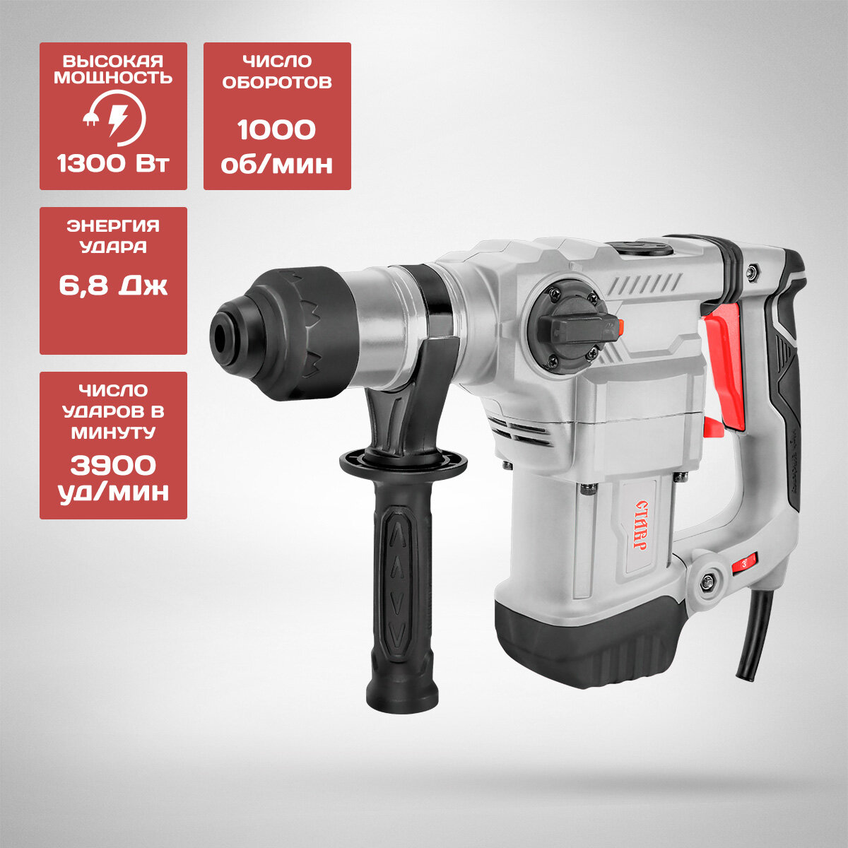 Перфоратор СТАВР ПЭВ-1300м, SDS-Plus, 1300Вт, 3 режима, кейс информация: