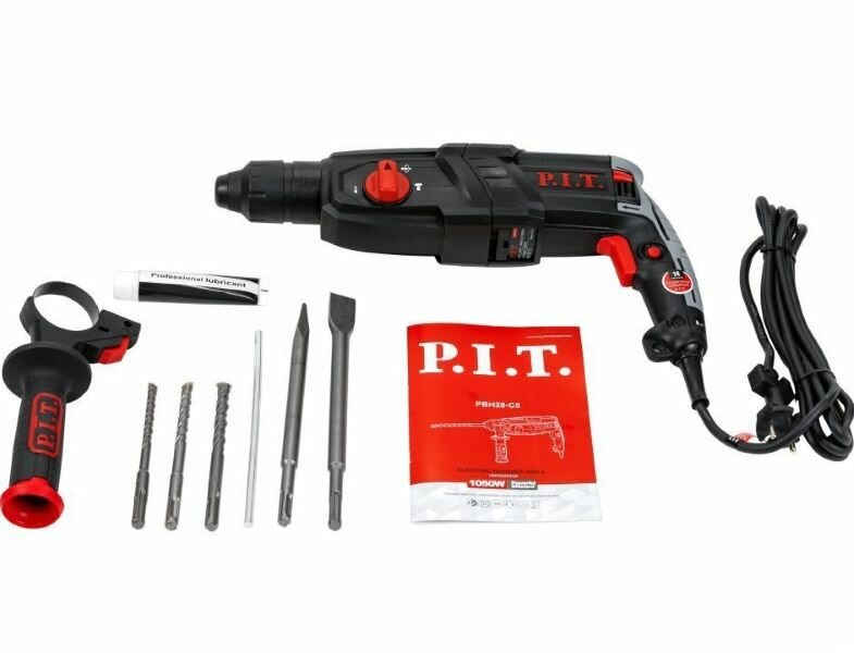 Перфоратор PBH28-C5 PIT sds-plus 4 режима 1,05кВт 3,2Дж 28мм в кейсе с бурами шнуром 2м информация: