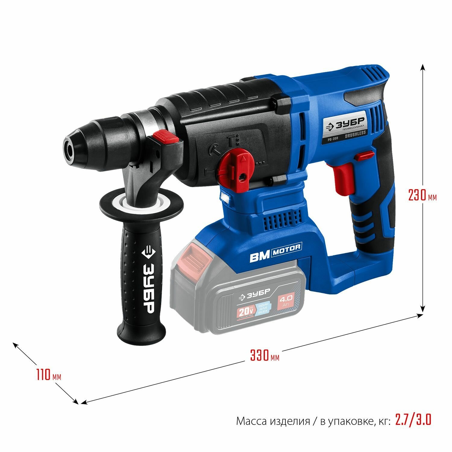 Бесщеточный перфоратор, PB-260 ЗУБР Т7, 20 В, 26 мм, без АКБ информация: