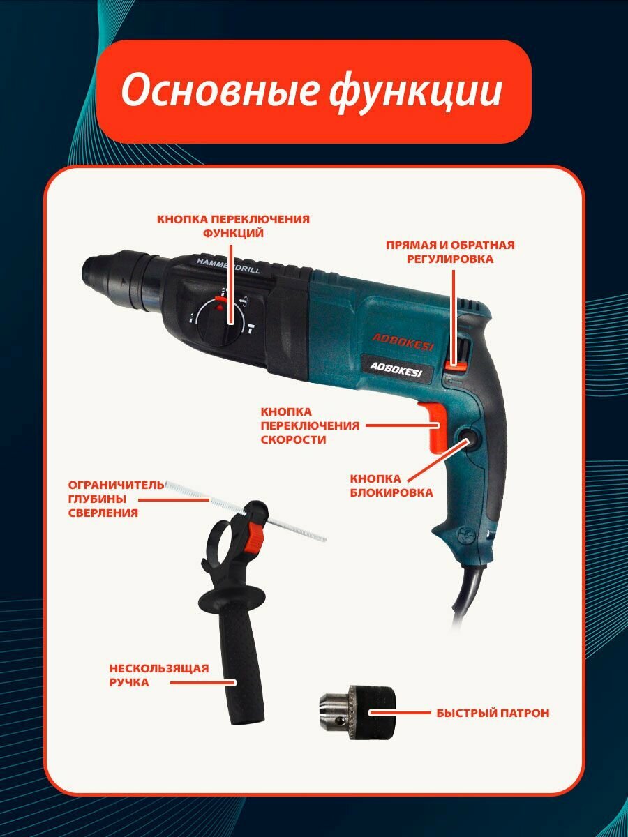 Электрический перфоратор 1800Вт / Сетевой перфоратор для дома в чемодане