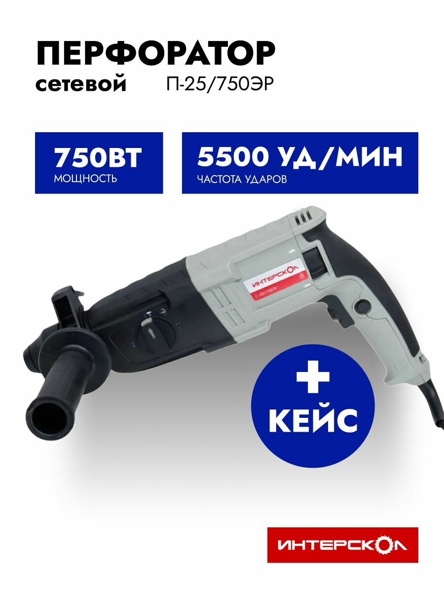 10 цен на Перфоратор электрический профессиональный Интерскол П-25/750ЭР SDS plus