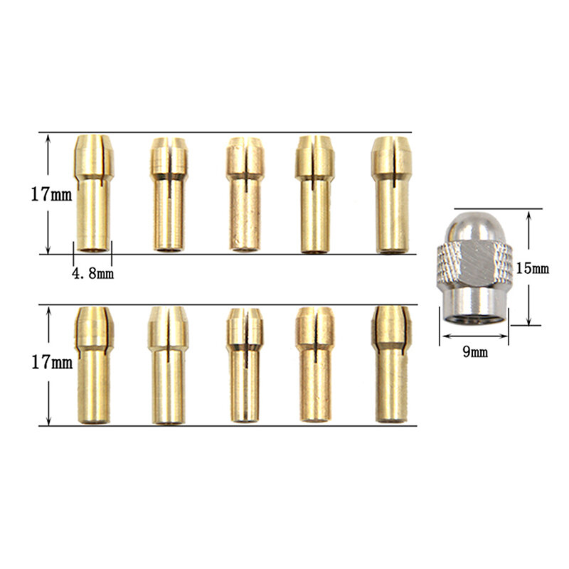 GJCUTE 11 шт./комплект мини-сверл латунные цанговые патроны для вращающегося инструмента 0,5-3,2 мм информация:
