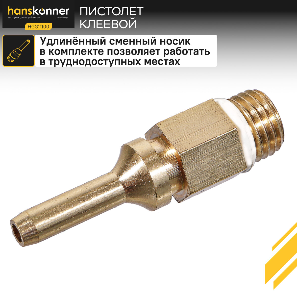 10 цен на Пистолет клеевой HGG11100 Hanskonner 100 Вт, 2 PTC, 2 сменных сопла, 4 стержня