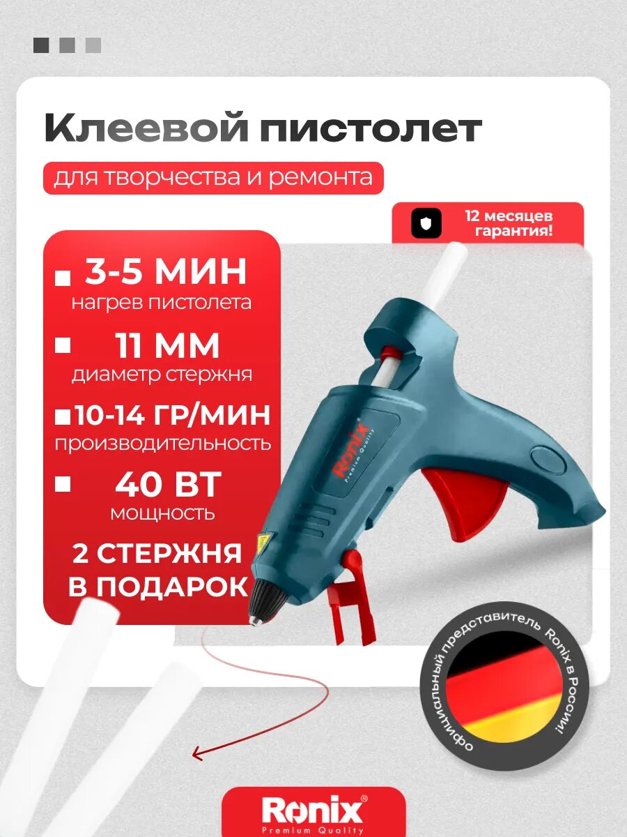 Отзывы на Клеевой пистолет 11 мм Ronix термопистолет для клея + стержни в комплекте