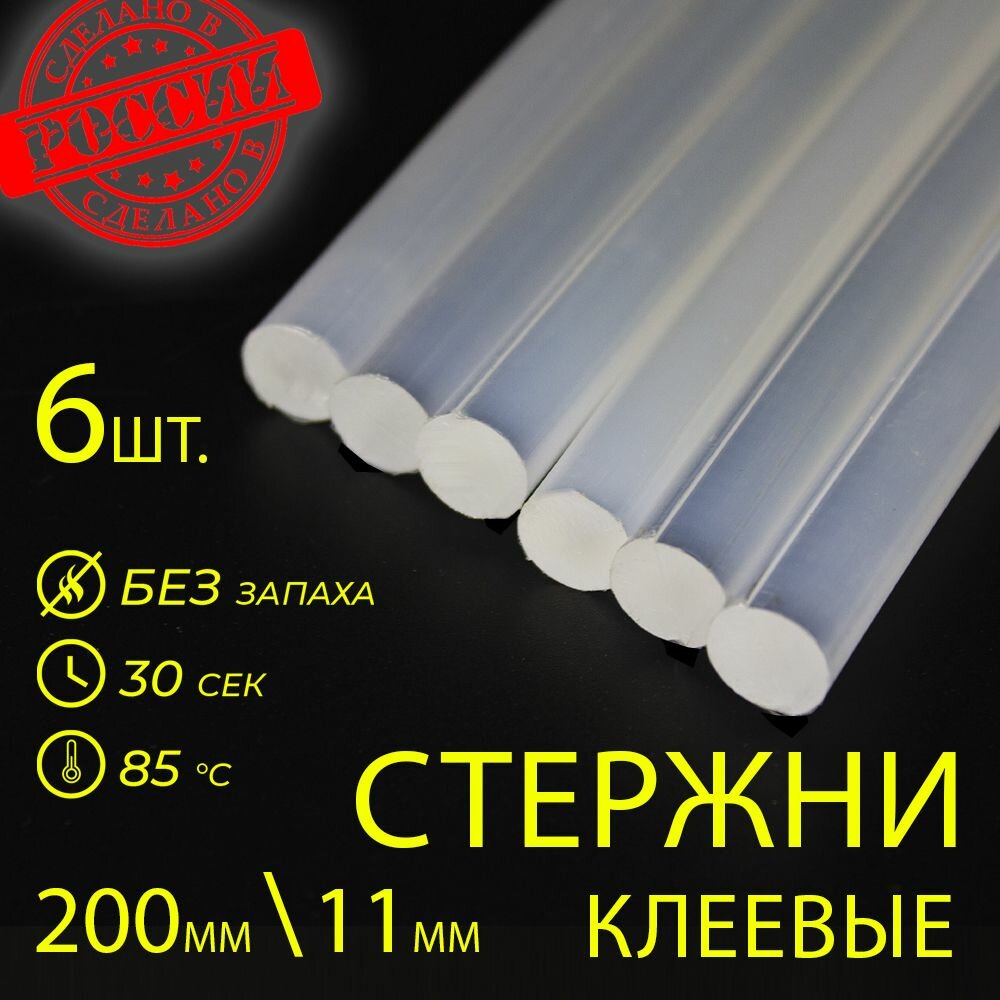 Стержни для клеевого пистолета 11мм x 200мм. Термоклей 6 штук информация: