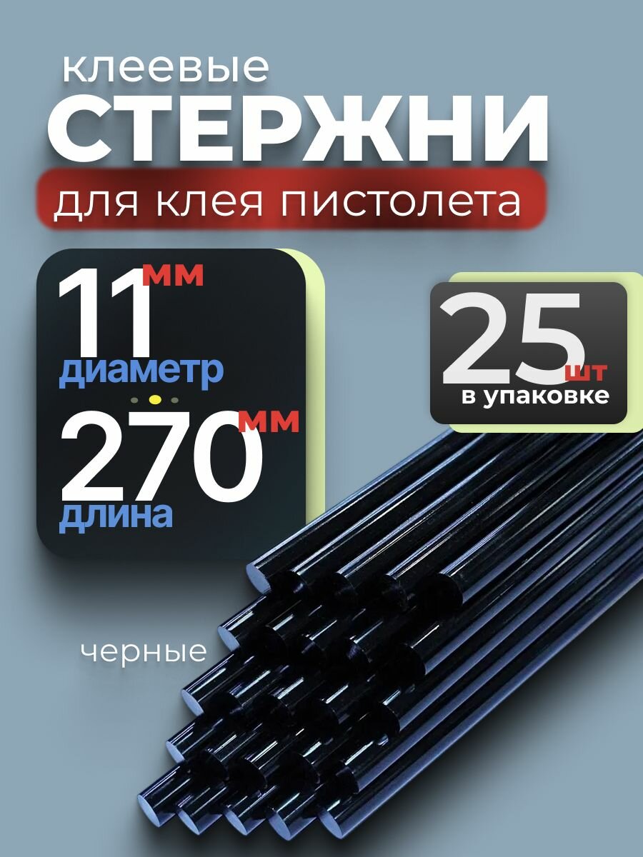 10 цен на Клеевые стержни, черные, для термоклеящих пистолетов, диаметр 11мм, комплект 25шт