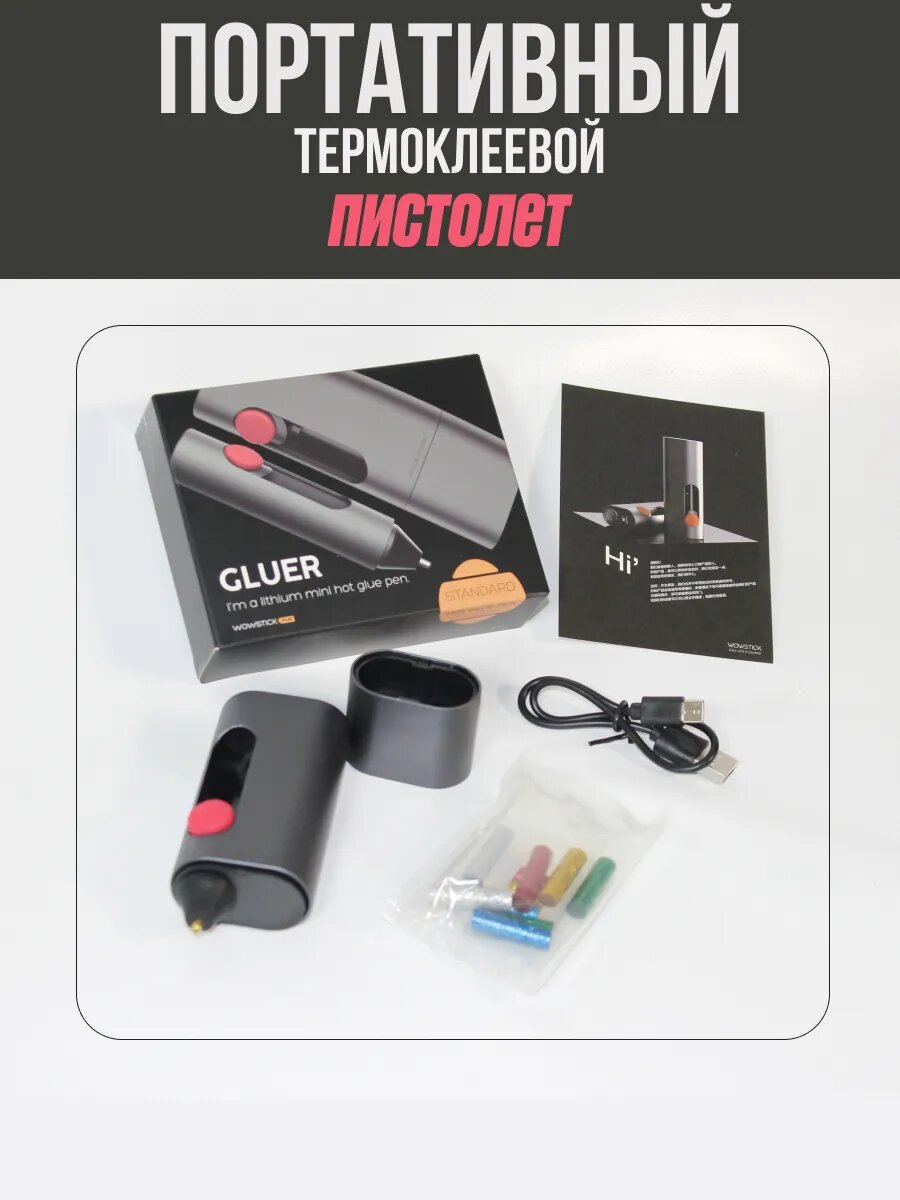 Термоклеевой пистолет "Gluer", портативный, черный, работает от аккумулятора информация: