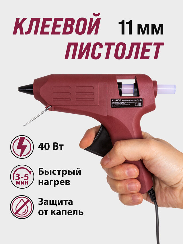 Клеевой пистолет 11 мм электрический Fusion tools GG-F11-01, 40 Вт информация: