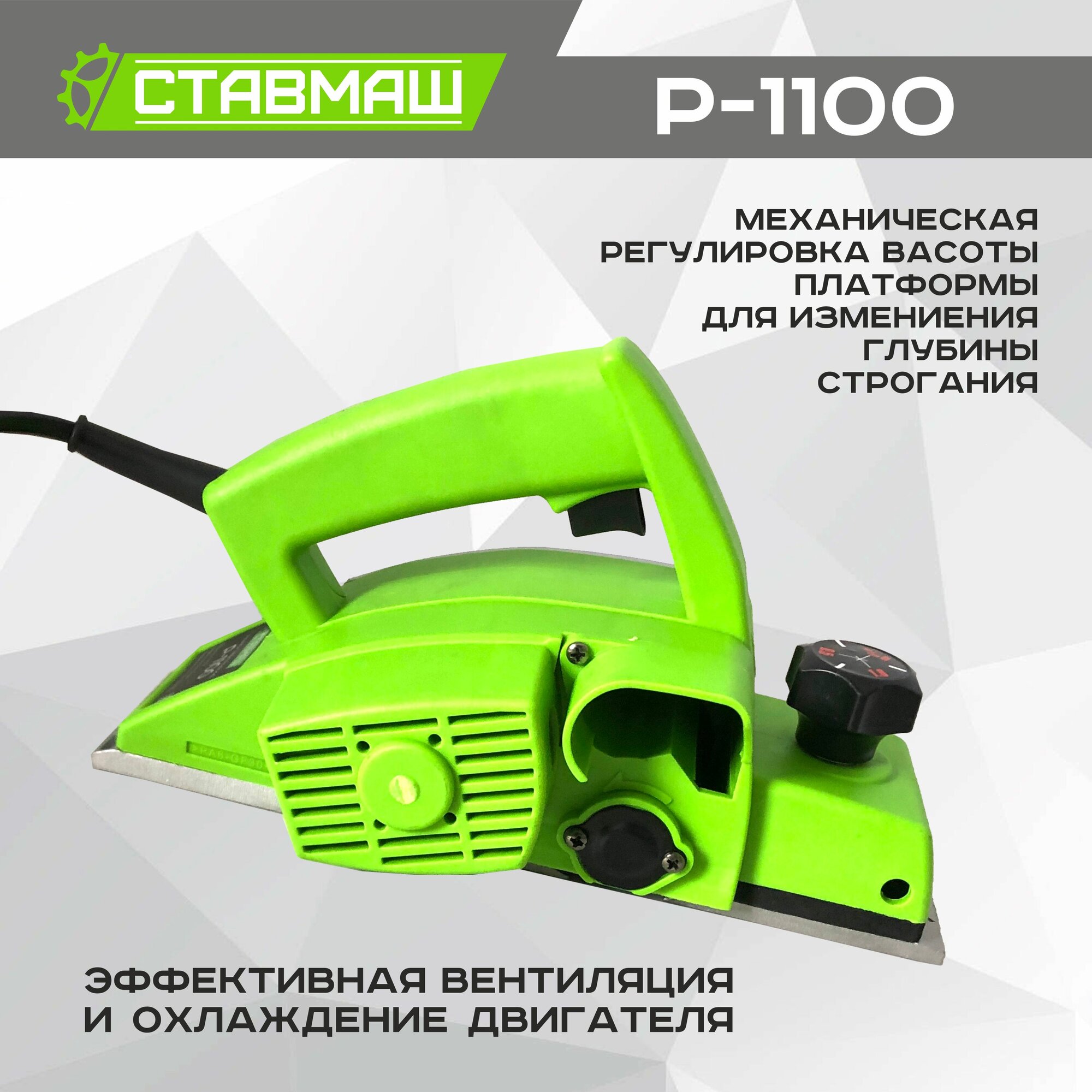 Рубанок Ставмаш Р-1100, электрический, плавная регулировка глубины, зелёный информация: