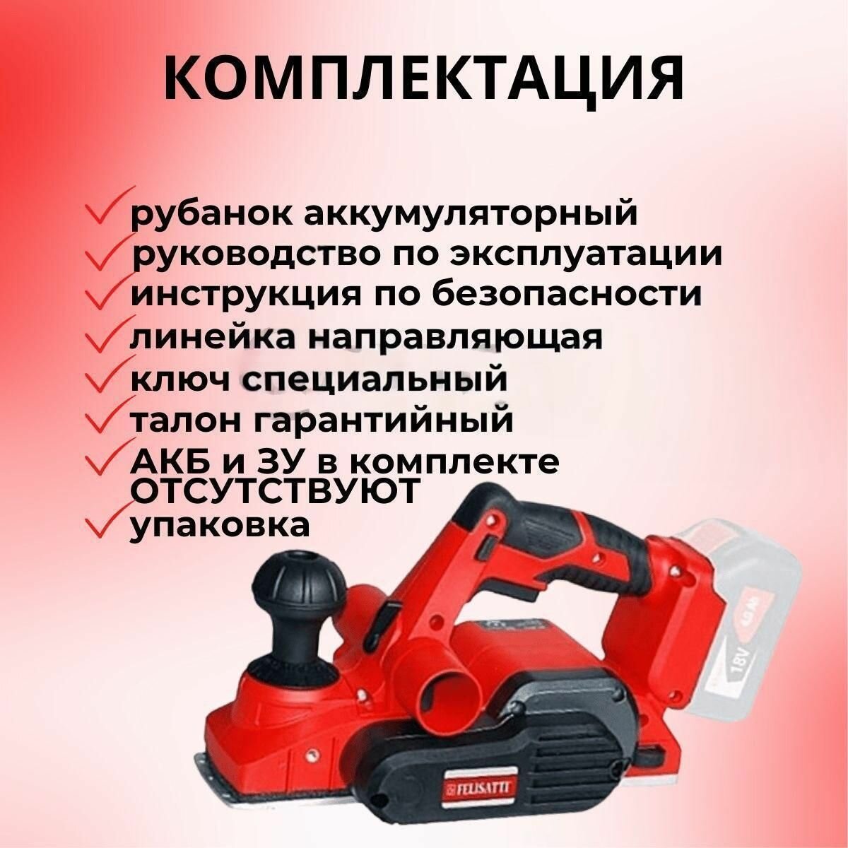 Рубанок аккумуляторный Felisatti Р-82/18Л3 (без АКБ и ЗУ) 506.5.0.00 информация: