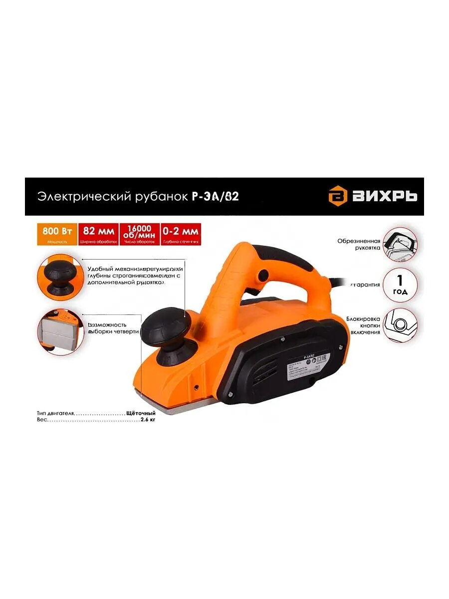 Рубанок "Вихрь" Р-82/800, 800 Вт, ширина/глубина 82/2 мм, 16000 об/мин + НОЖ./В упаковке шт: 1