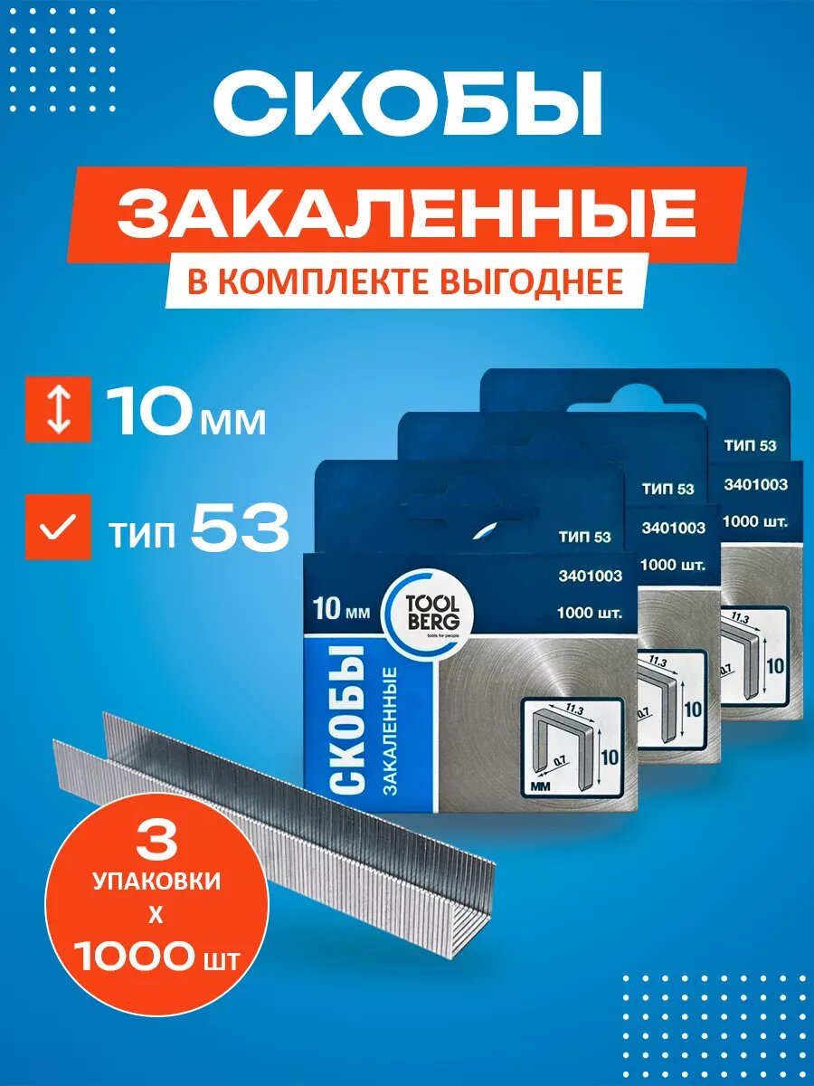 Набор скоб Toolberg, тип 53, для мебельного степлера, 10 мм, 3000шт информация: